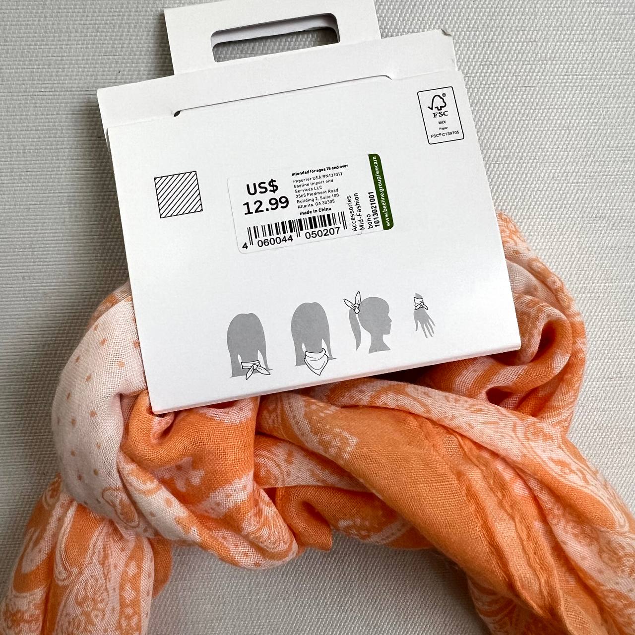 مناسب به عنوان روسری، لچک، باندانا، تل، دستمال گردن، استایل روی بند کیف